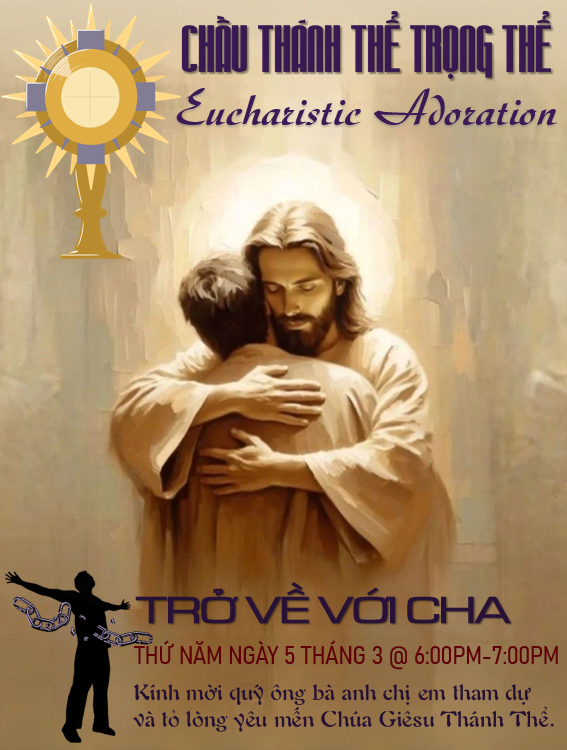 Chầu Thánh Thể Trọng Thể (Eucharistic Adoration).6:00PM - 7:00PM.